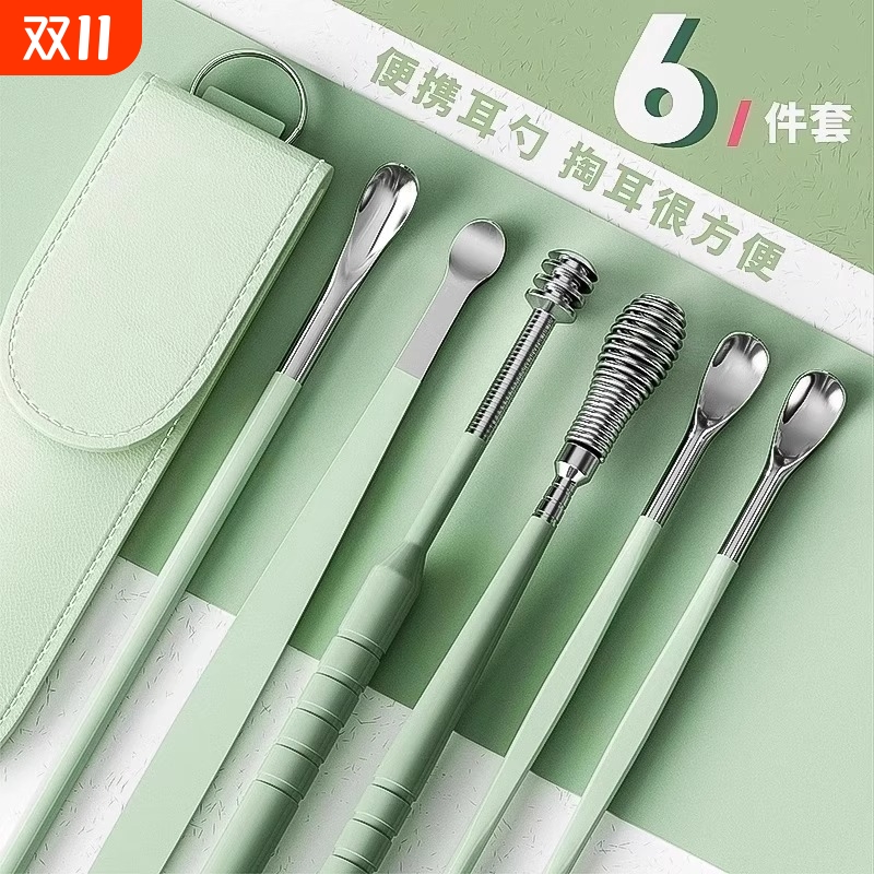 挖耳勺套装采耳工具不锈钢掏耳朵神器螺旋式便携皮包扣耳屎扒家用