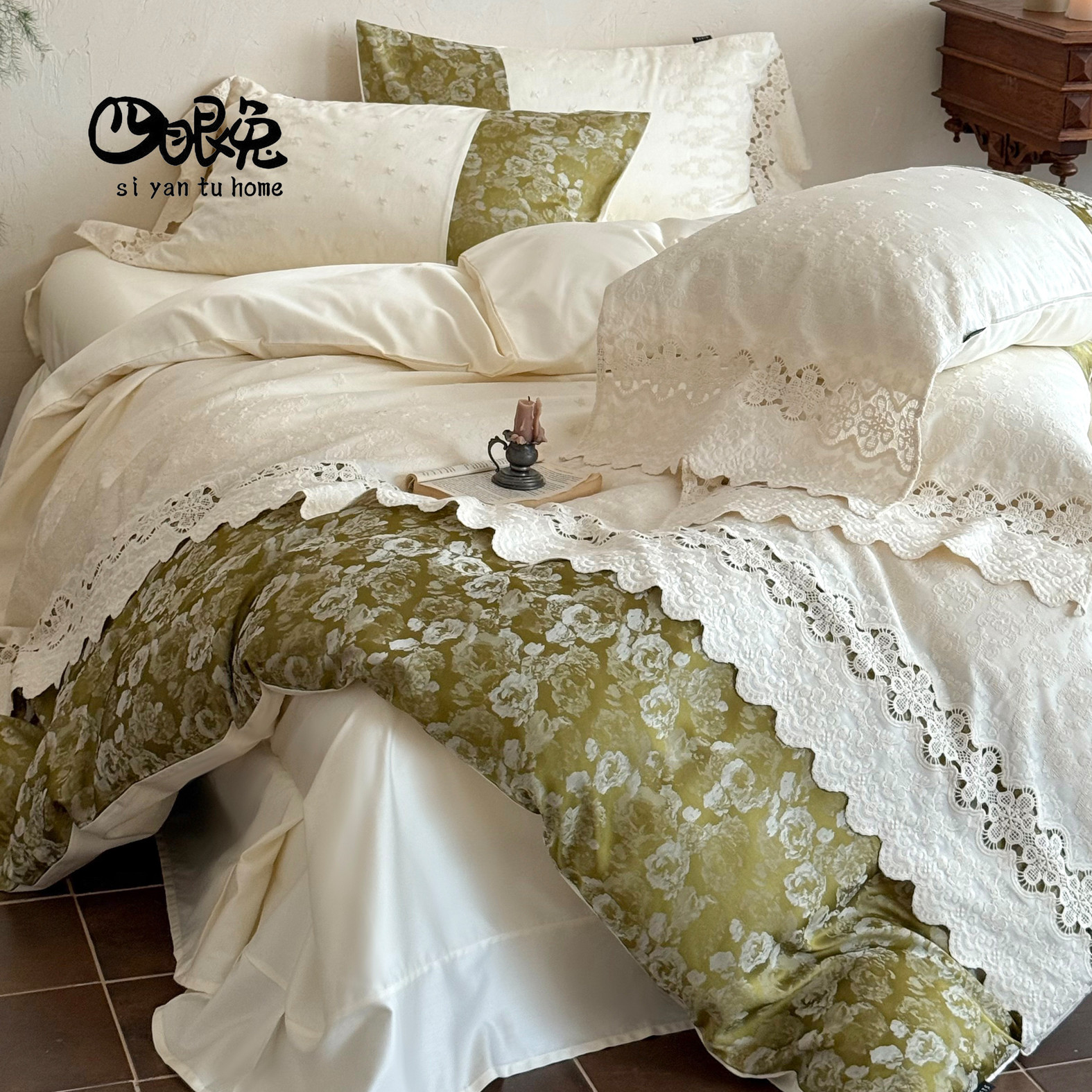 富安娜四件套60支长绒棉轻奢套件全棉印花被套床单法式床品