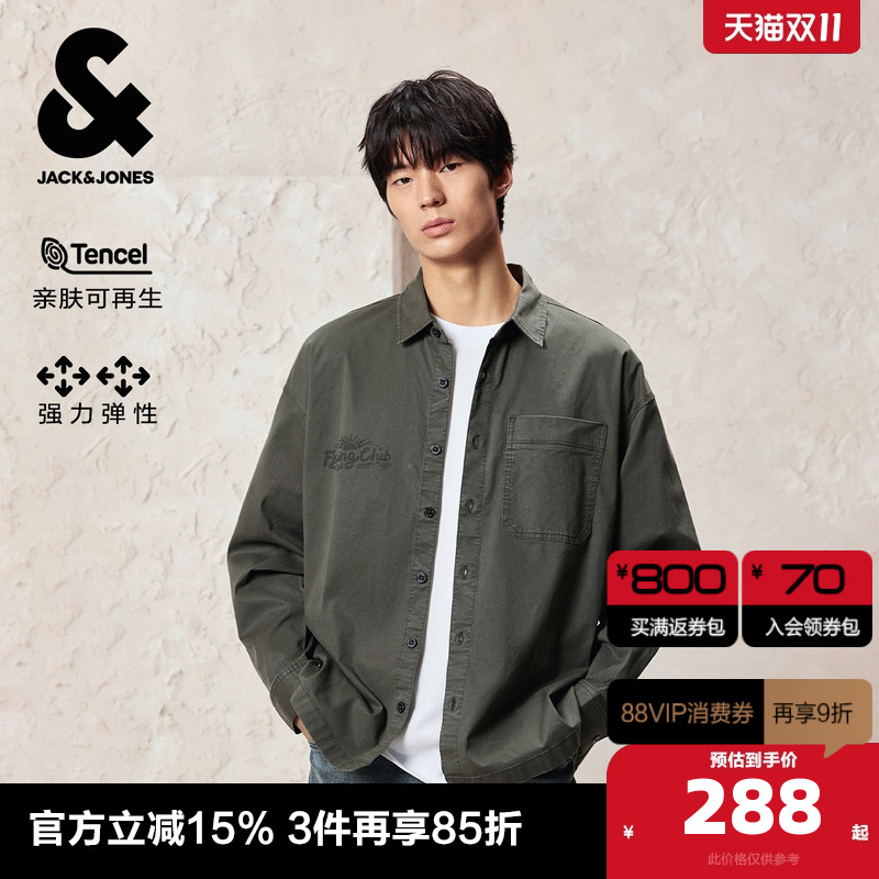 杰克琼斯奥特莱斯男装秋季衬衫字母印花口袋翻领廓形日常长袖上衣