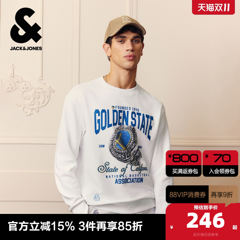 杰克琼斯奥特莱斯NBA联名男装卫衣秋季新款舒适纯棉廓形圆领上衣