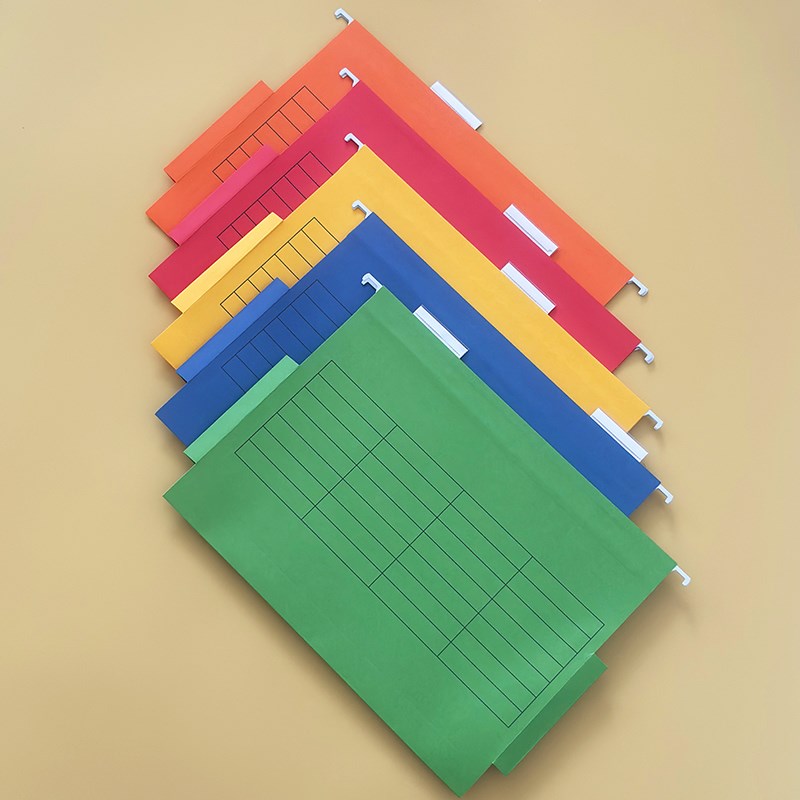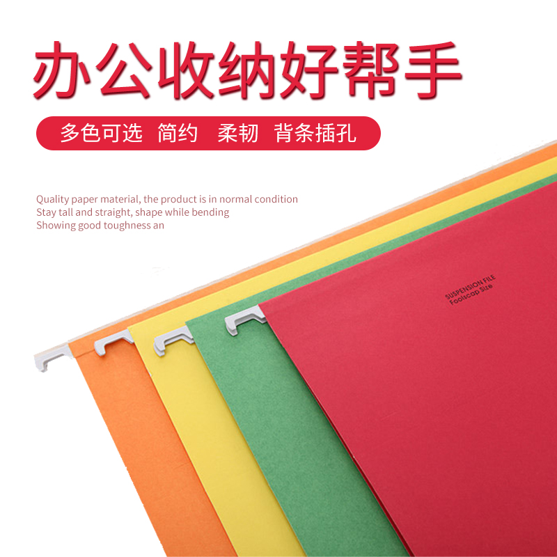 资料袋卡箱彩色纸质挂劳夹a4吊挂夹文件夹快劳夹带挂钩fc办公用品