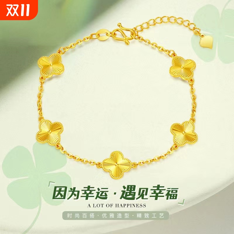 正品越南沙金手链女金店款黄金色铜合金四叶草手链情人节生日礼物