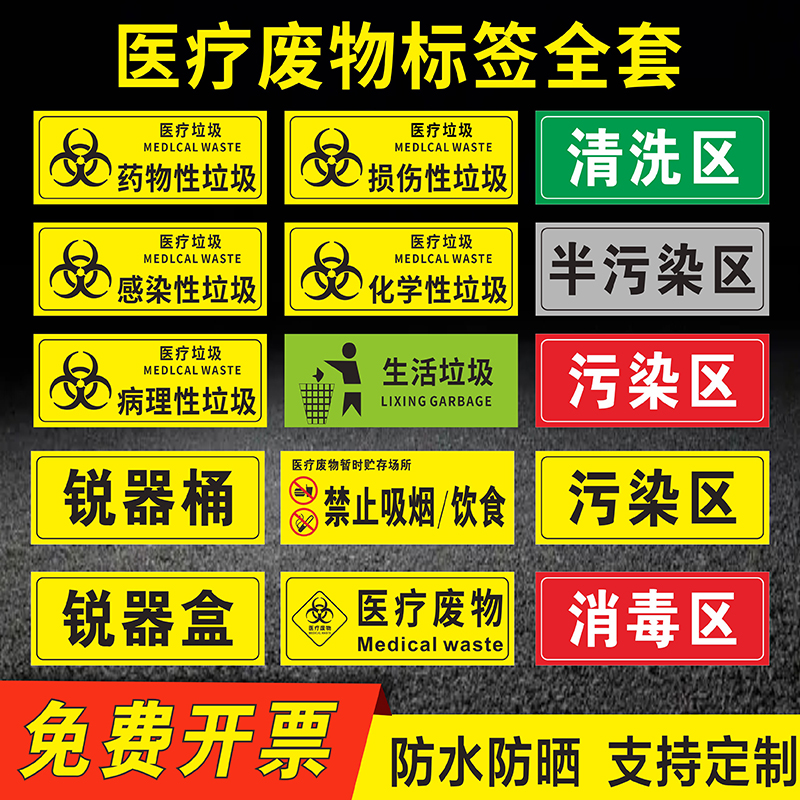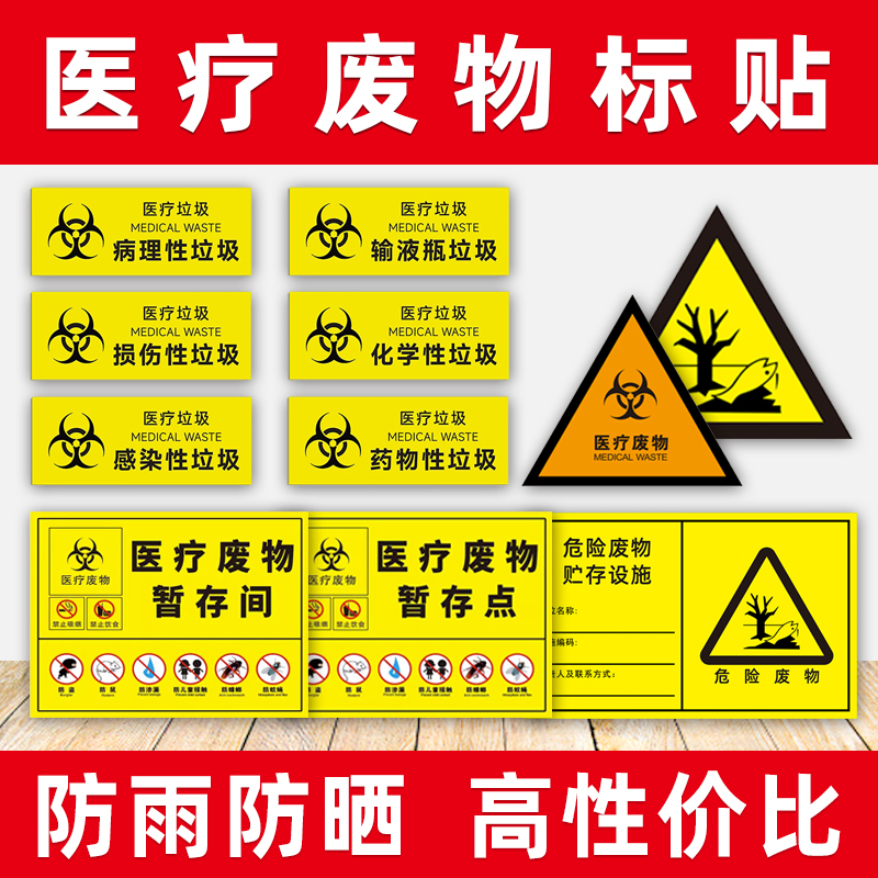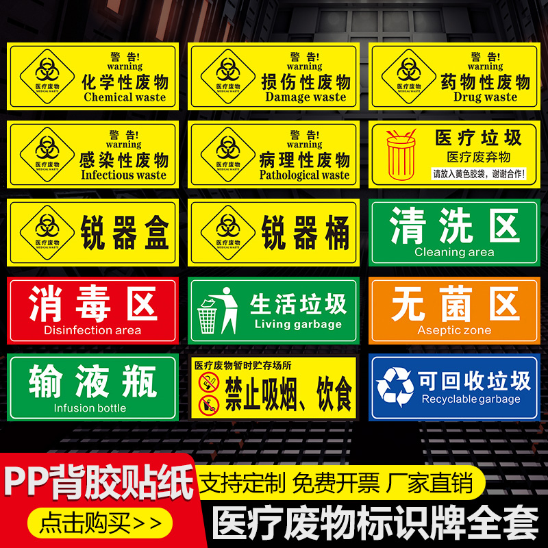 医疗废物标签贴定制医院垃圾桶分类贴纸医疗废弃物标识牌感染损伤化学