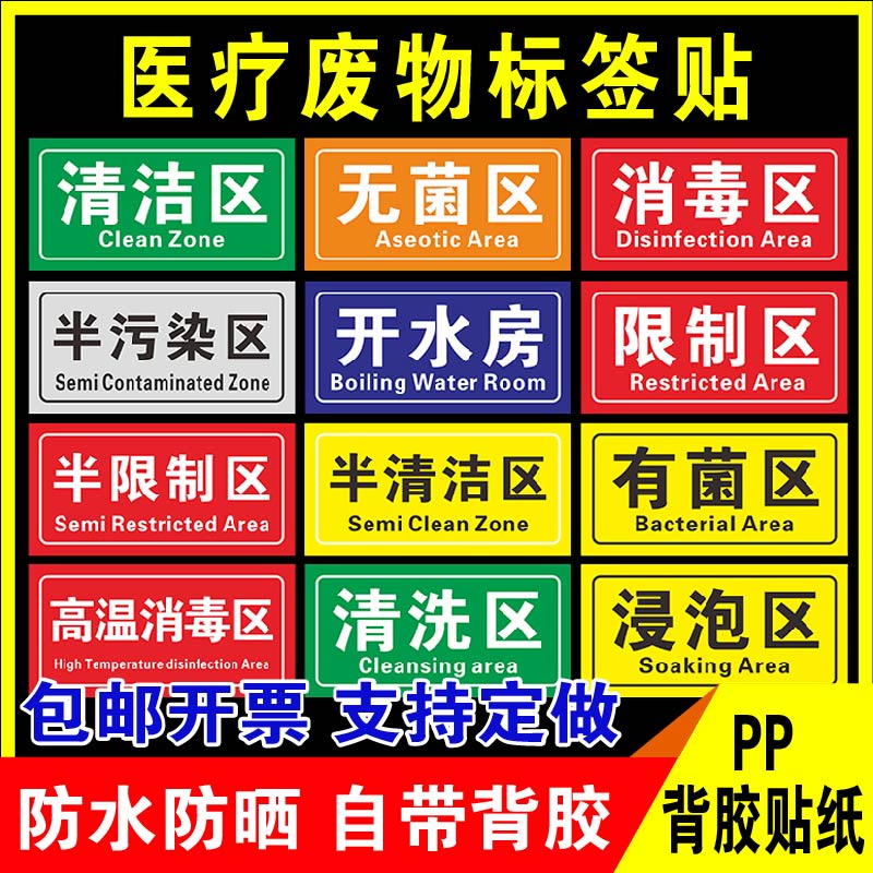 病区医院感染区半污染区专用拖把抹布分区域分类提示贴纸定制毛巾拖把