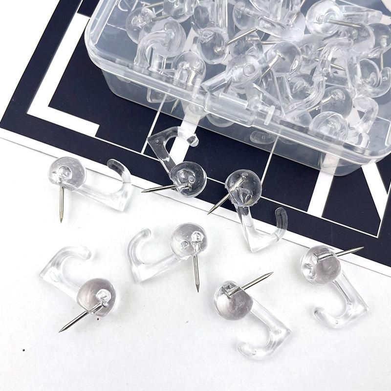 100枚透明圆球带钩挂钩图钉音符钉软木板毛毡板装饰首饰挂饰专用