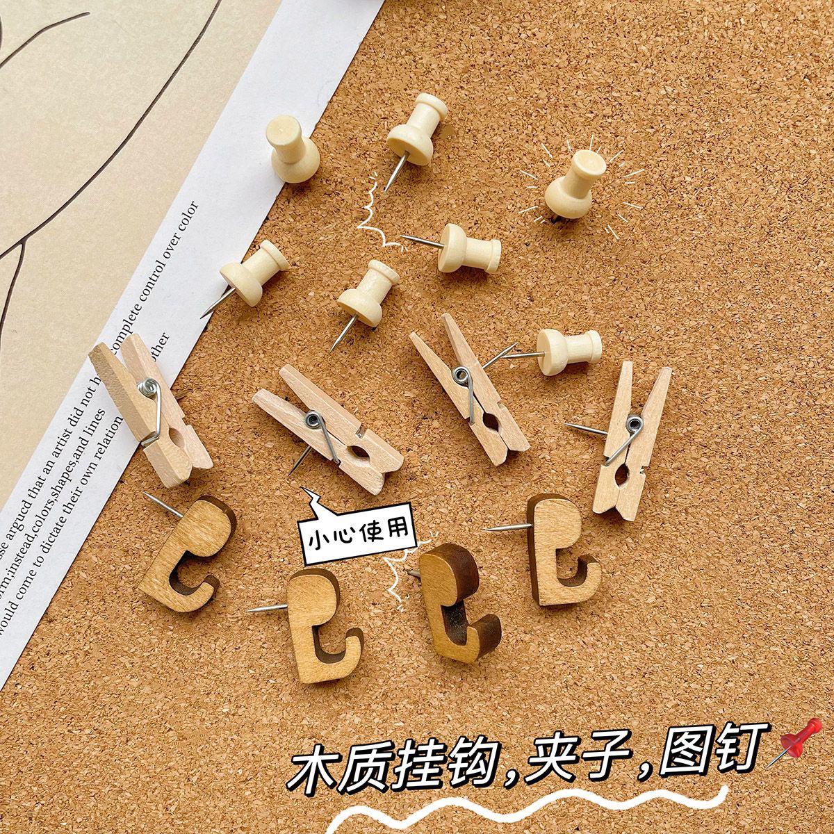 软木板照片墙毛毡板木质挂钩图钉装饰复古高级感挂钩图钉装饰