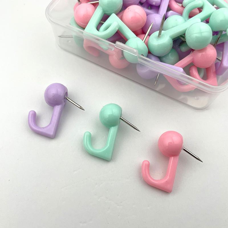 100枚彩色圆球带钩挂钩钉软木板毛毡板装饰马卡龙无痕音符钉