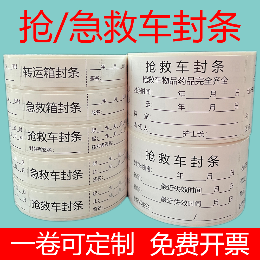 抢救车封条标识急救车封条标签贴警示贴纸药物不干胶标示防水贴纸