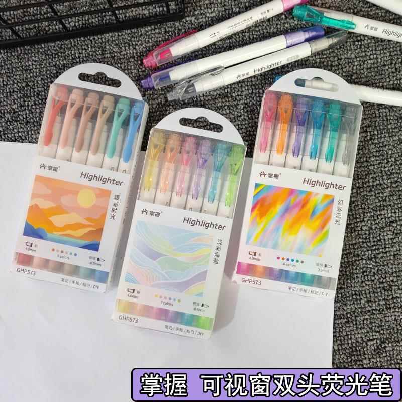 掌握573可视窗双头荧光笔套装学生划重点标记笔彩色手账笔高颜值