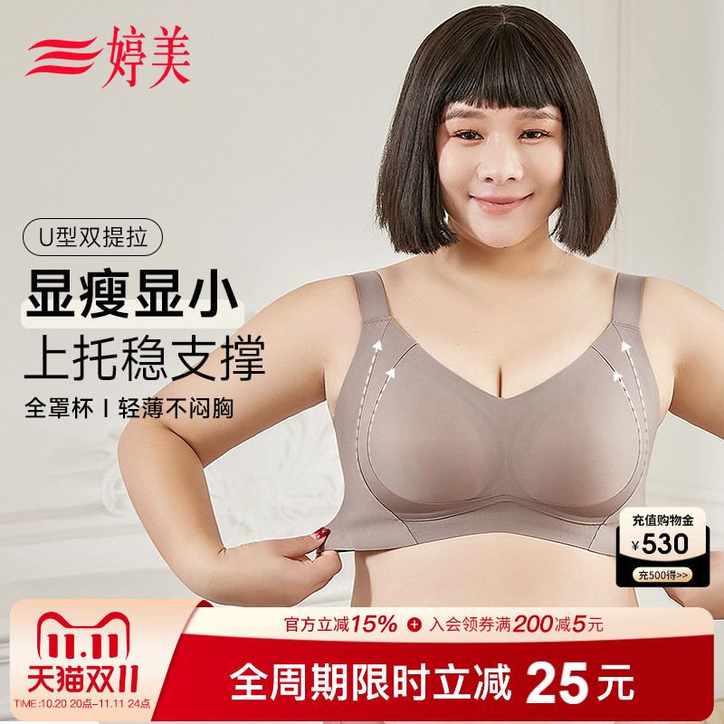 薄款内衣女无痕显大码大胸软钢圈聚拢收副乳防下垂胖mm文胸罩防滑