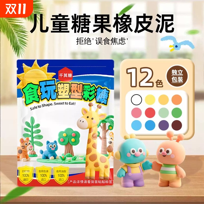 千其糖12色橡皮泥可以吃的儿童食品彩泥超轻粘土幼儿园手工玩具