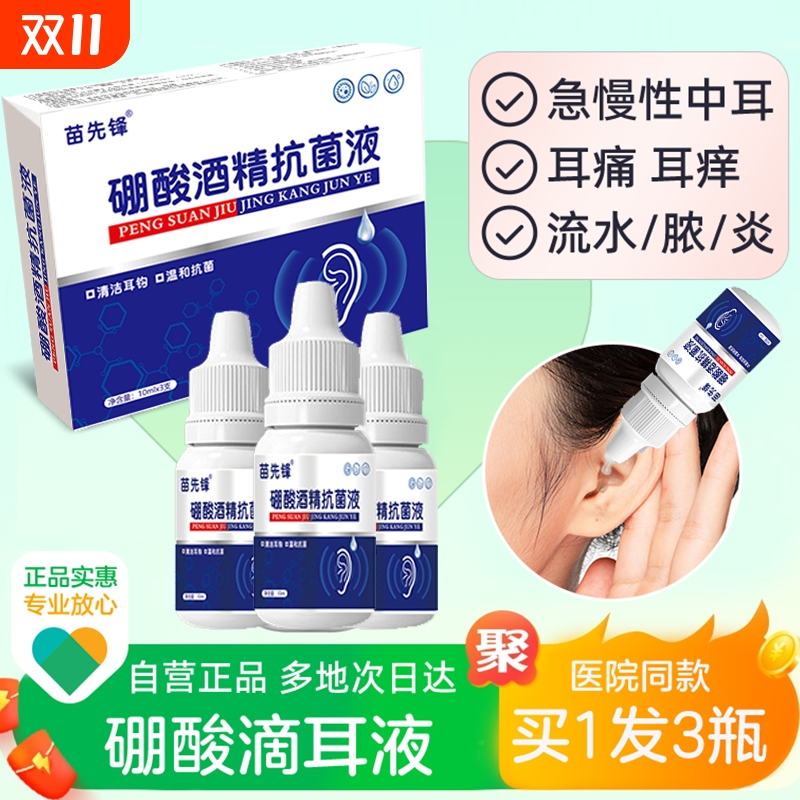 4%硼酸酒精滴耳液人用中耳药油耳朵痒流脓止痒耳膜冰片耳痛健康