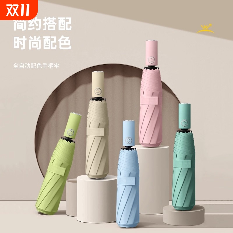 全自动三折折叠双骨加固抗风暴加厚黑胶涂层专业防晒自动印logo伞