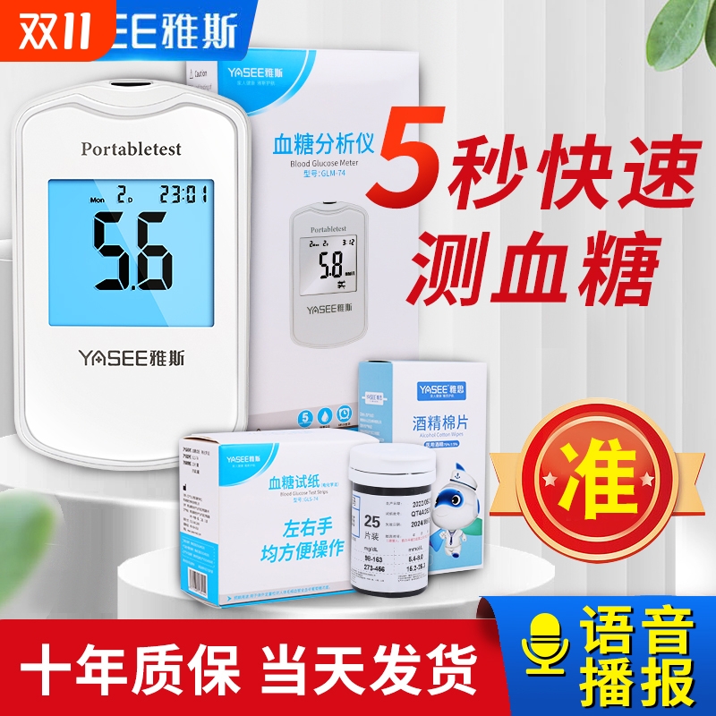 雅斯血糖仪家用语音播报血糖检测仪器高精准免调码血糖测试纸正品