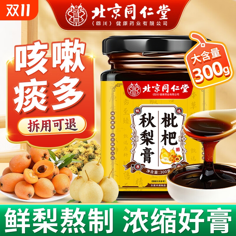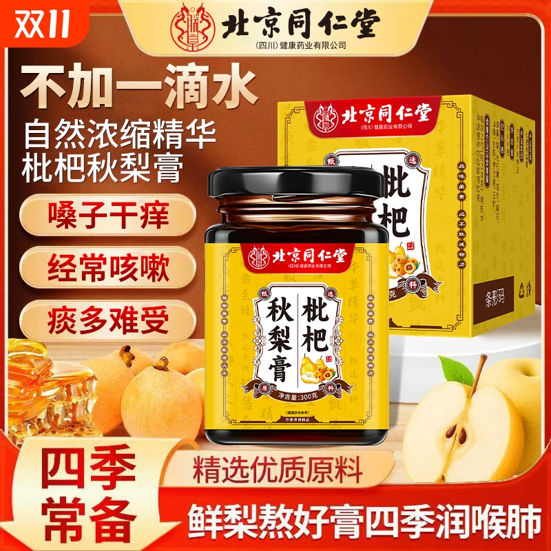 北京同仁堂枇杷秋梨膏润肺止咳护嗓化痰秋梨膏儿童无添加官方正品