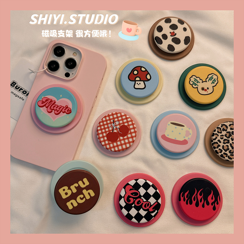 韩国ins插画可爱卡通适用MagSafe磁吸懒人支架气囊伸缩强力