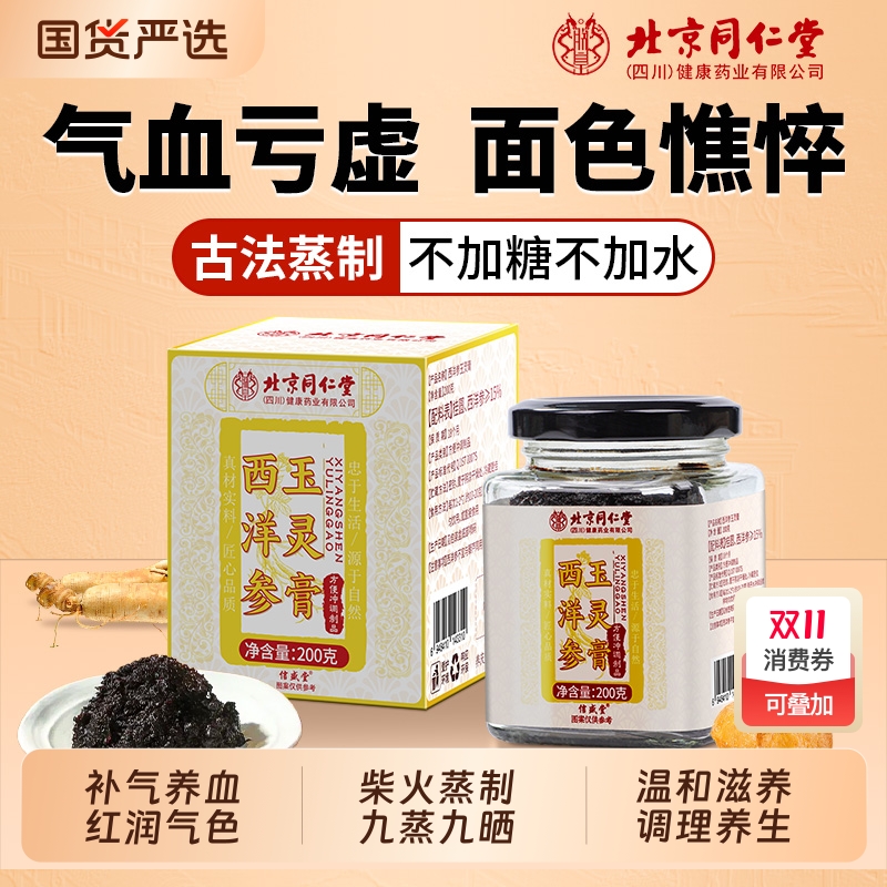 北京同仁堂红参玉灵膏气血女性双补古法蒸制西洋参官方旗舰店正品