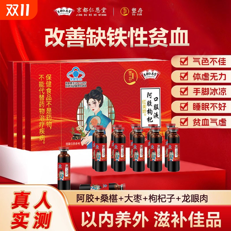京都仁恩堂红美娇@阿胶枸杞口服液养颜气血双补调理月经不规律