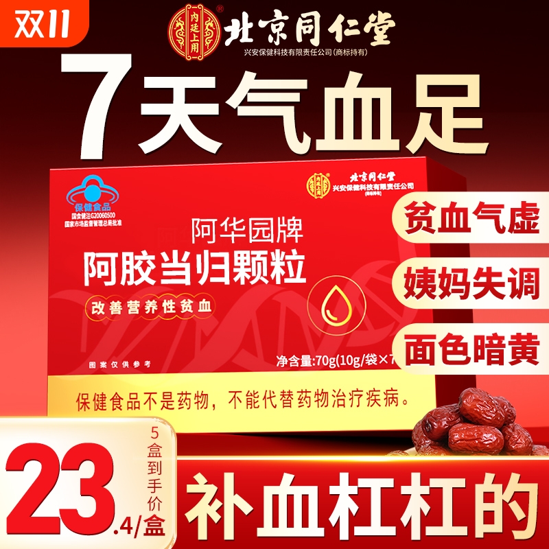 同仁堂阿胶当归补血颗粒养血调理改善贫血女人补气养血气血不足