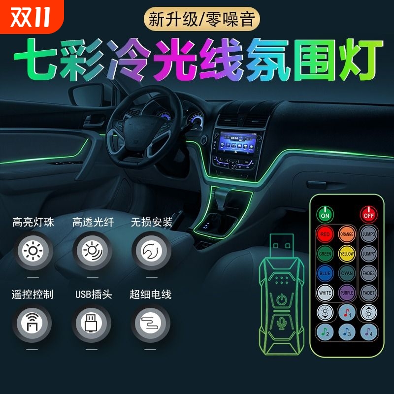 汽车冷光线氛围灯车内装饰灯七彩声控光条USB免接线LED中控车门