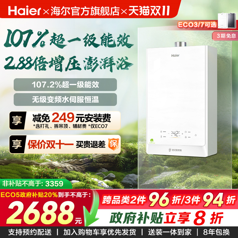 [政府换新补贴]海尔静音燃气热水器一级能效节能恒温ECO5清氧