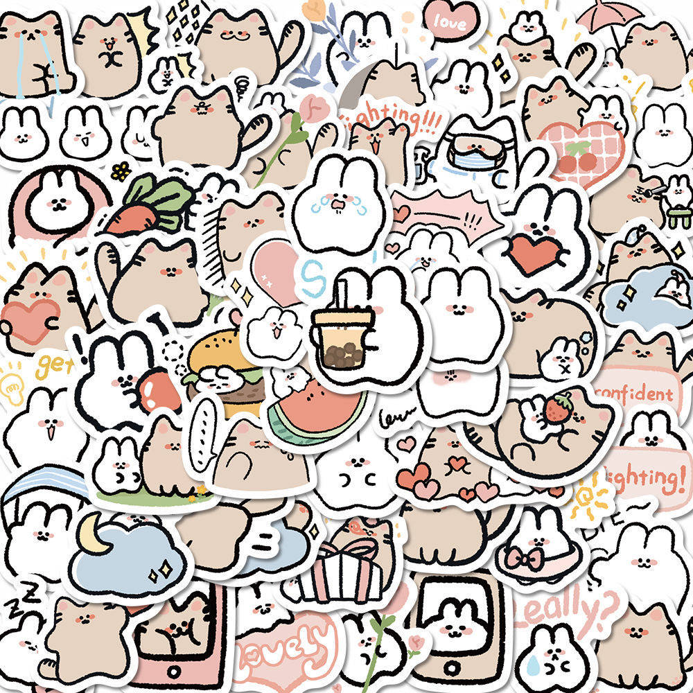 116张猫和兔可爱贴纸韩系卡通手账贴电脑水杯咕卡装饰防水贴画