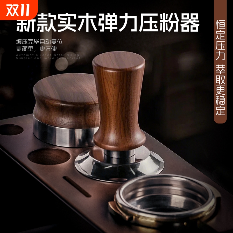 榉木弹力恒力咖啡压粉锤水平压粉器木质把手51/53/58MM咖啡