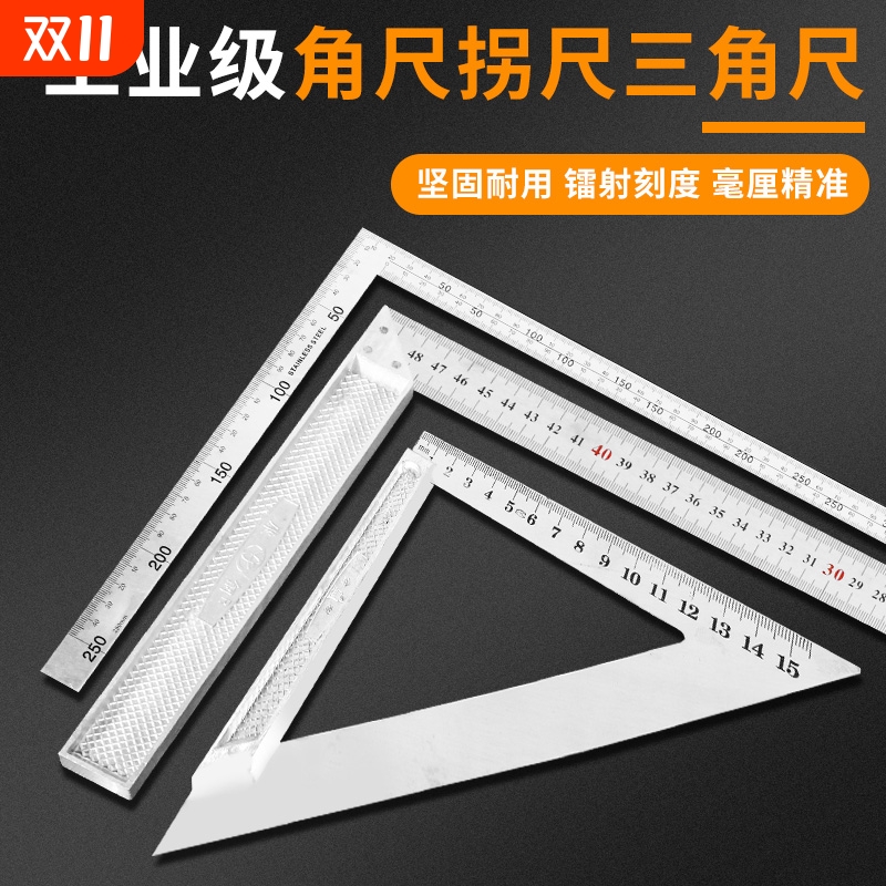 不锈钢角尺水平直角尺90度测量拐尺三角尺木工尺多功能角度尺钢尺