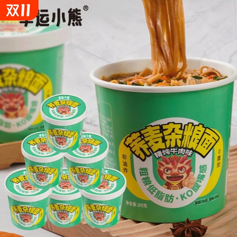 荞麦杂粮面6桶装泡面荞麦杂粮面牛肉拉面冲泡方便面非油炸面