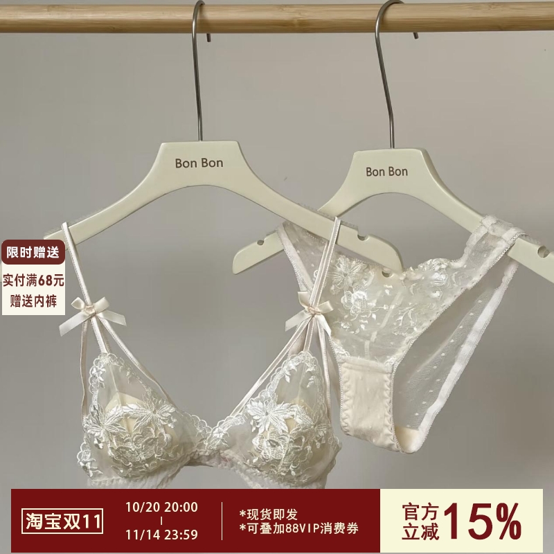 法式性感纯欲三角杯内衣女超薄款蕾丝若隐若现无钢圈小胸文胸套装
