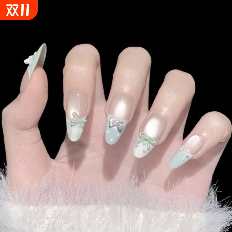 美甲小红书穿戴甲高级感猫眼珠链手工渐变贴片少女蝴蝶结甲片法式