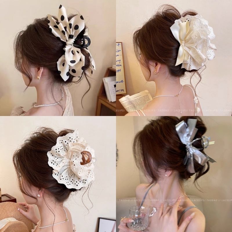 抓夹鲨鱼夹法式复古蕾丝花边头发女高级感2025新款发夹后脑勺发饰