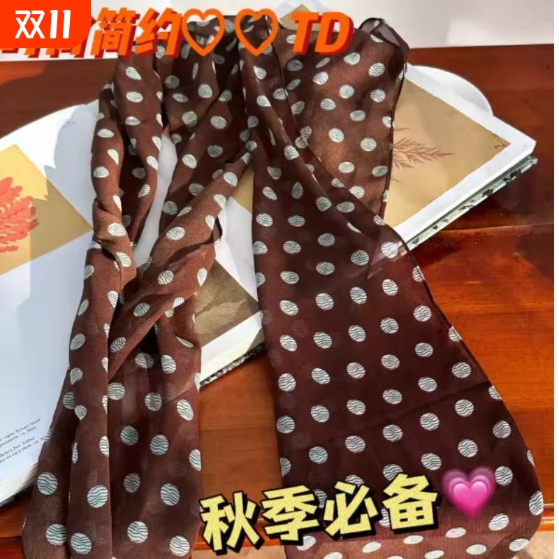 法式波点长条丝巾女2025春夏新款护颈饰系脖高级感时尚黑色红色