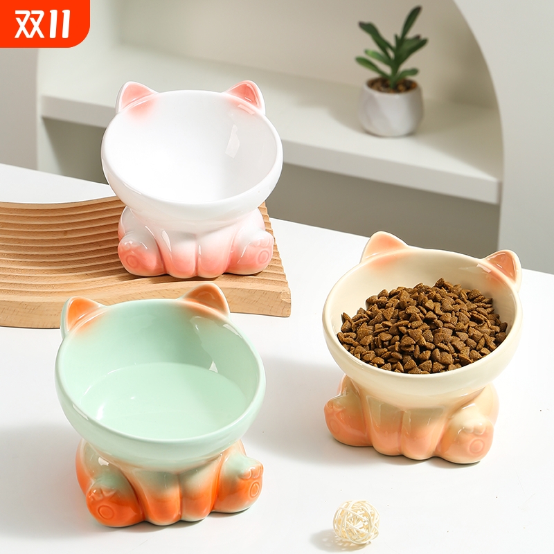 渐层猫碗陶瓷保护颈椎猫咪碗猫食盆水碗猫盆狗碗斜口宠物碗防打翻