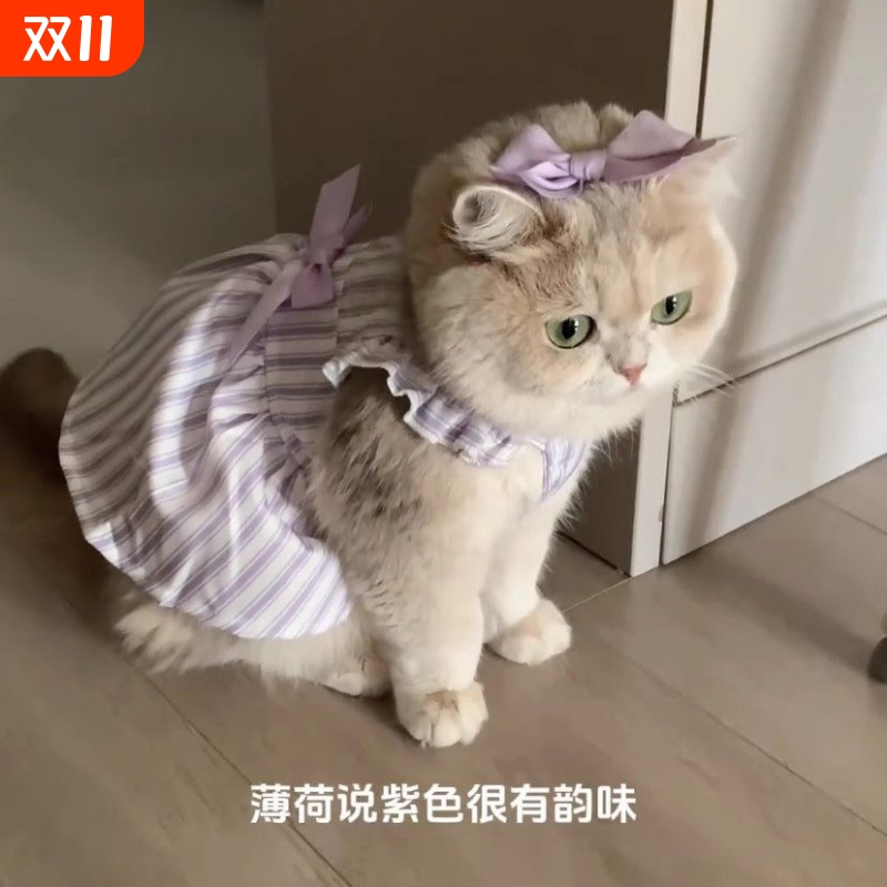 猫咪衣服夏天公主风防掉毛薄款幼猫布偶蓝白金渐层紫色裙子连衣裙