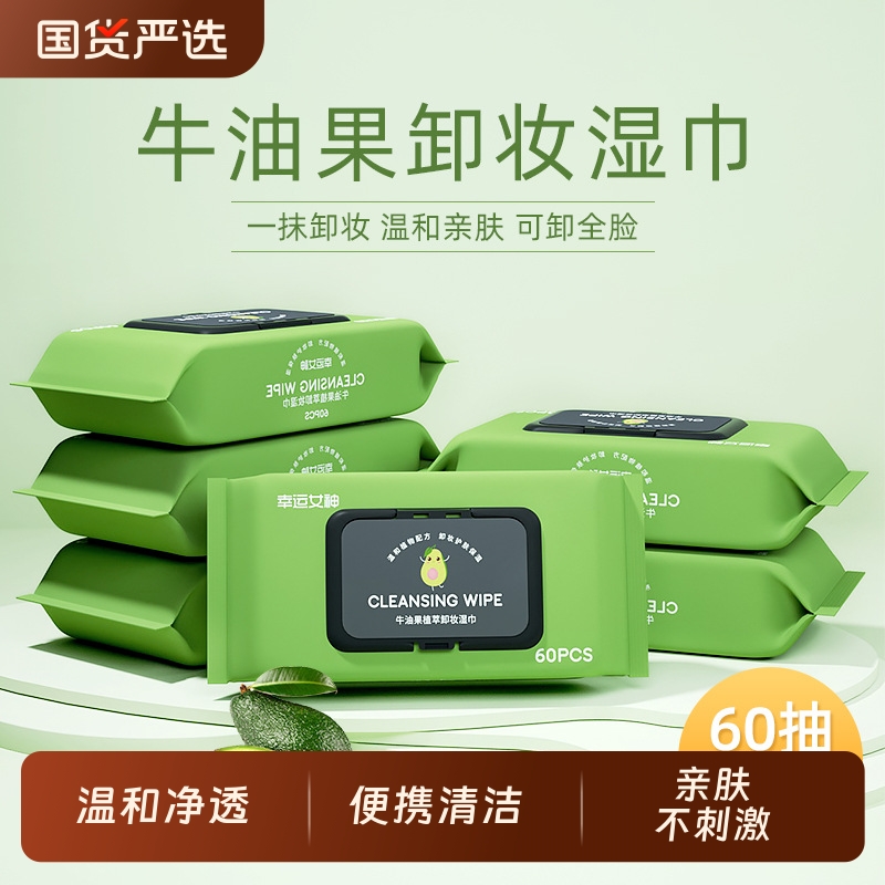 牛油果卸妆湿巾60抽免洗温和不刺激眼脸部补水保湿化妆美容工具