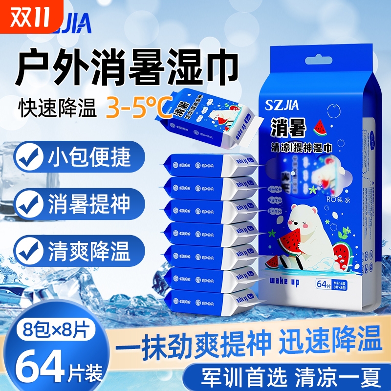 降温湿巾运动冷感冰凉湿纸巾困学生军训户外擦汗便携小包清凉冰感