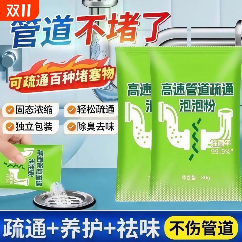 管道高速疏通剂泡泡粉强力溶解厨房下水道油污马桶疏通神器下水管