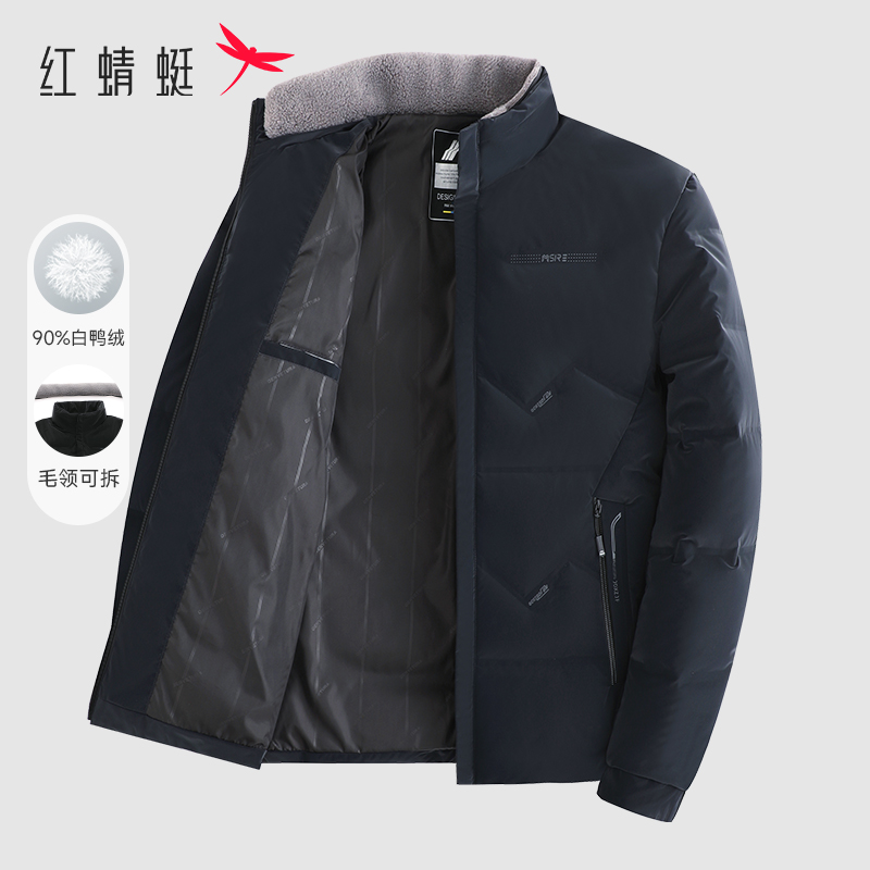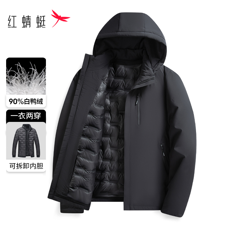【烈儿超级年货节】红蜻蜓男士羽绒服可脱卸加绒内胆连帽冬季外套