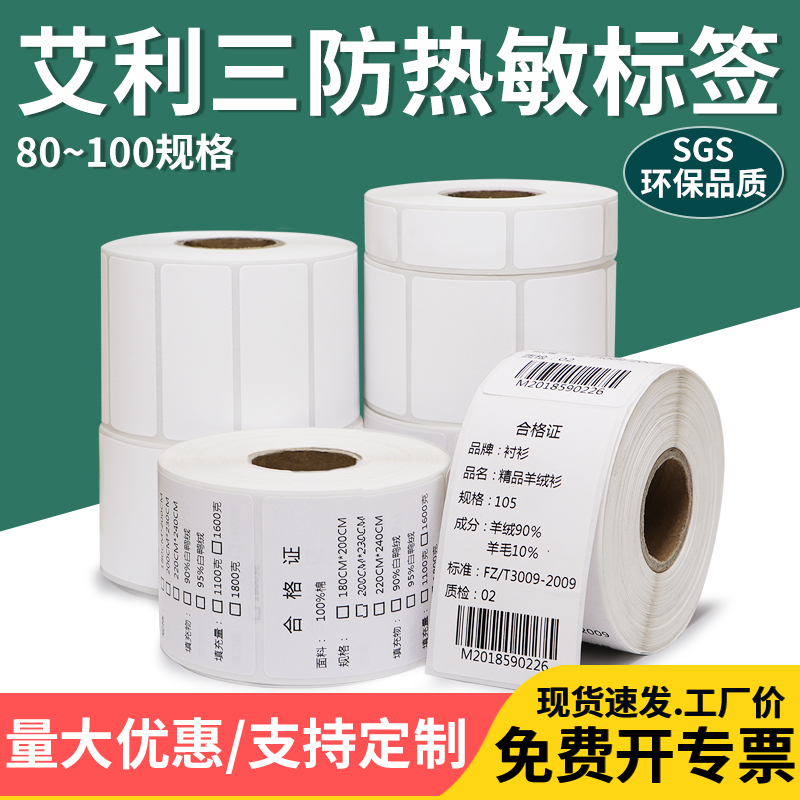艾利三防热敏纸60热感应标签条码影印纸超市标价贴纸白色背胶定制