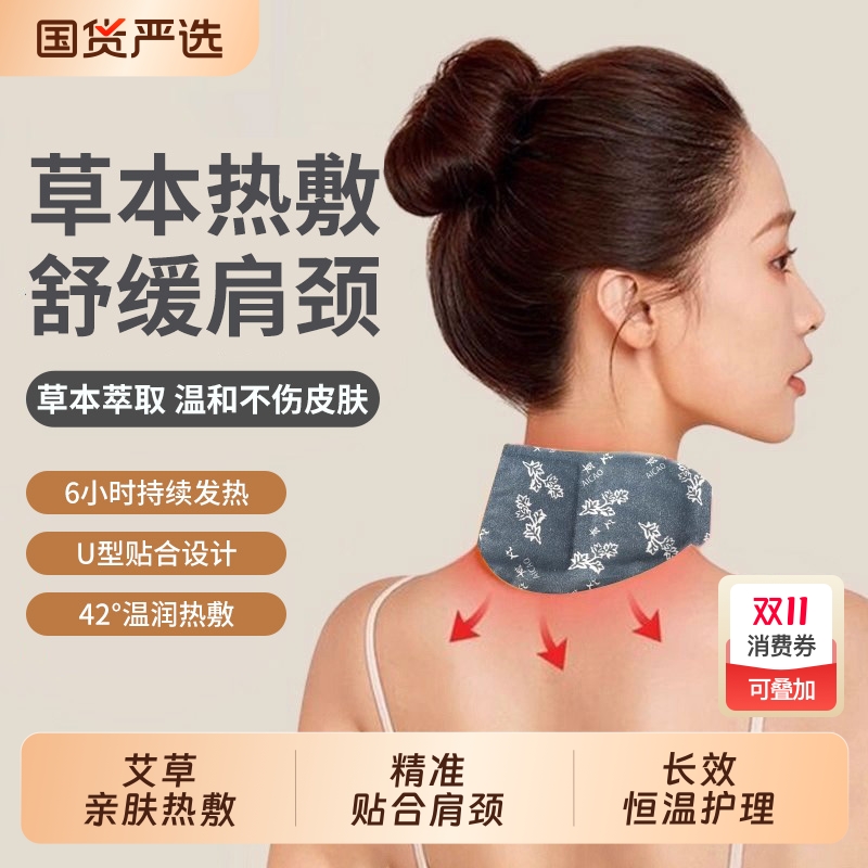 暖肩颈椎热敷贴艾草灸加热保暖围脖子护颈贴颈部热敷包发热贴肩膀