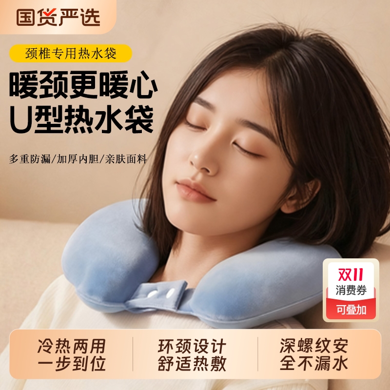 热水袋U型颈椎热敷注水灌水肩颈脖子颈部理疗热敷暖宝宝防爆加厚