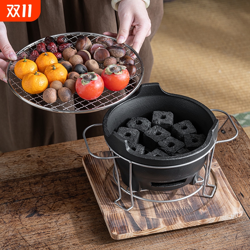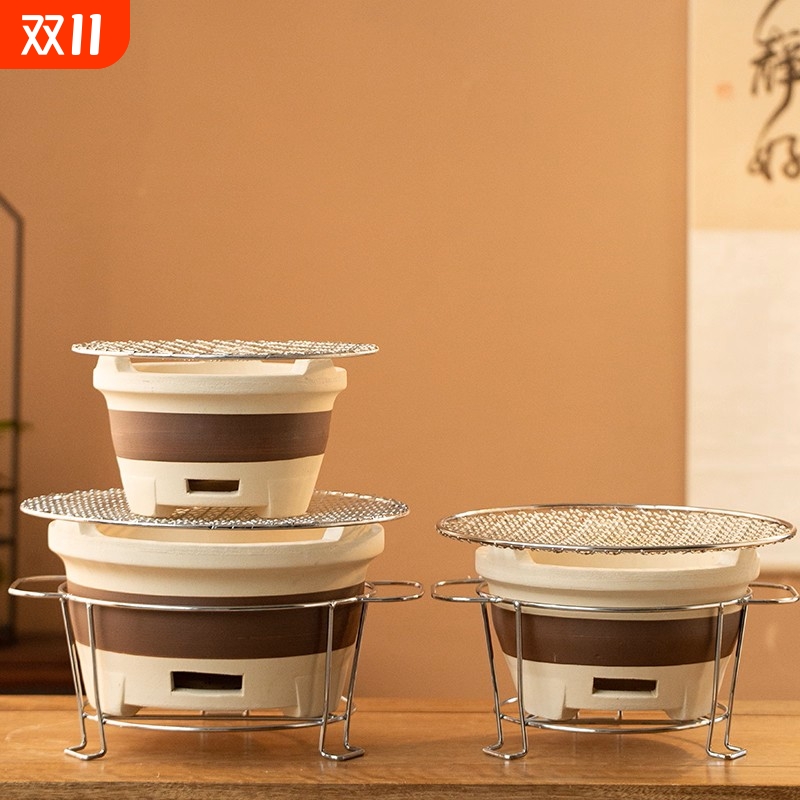 围炉煮茶壶套装炭炉老式家用室内打边炉烤火炉陶土泥炉煮茶炉炭火