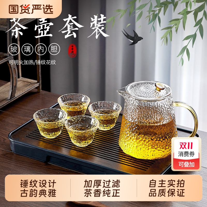 玻璃茶壶家用办公室耐高温茶水分离泡茶专用新款煮泡茶壶茶具套装