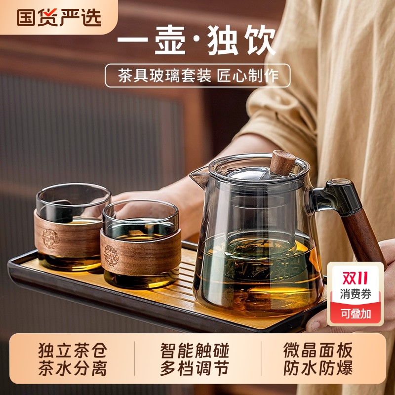 宝选玻璃茶壶泡茶家用茶水分离茶杯新款耐高温轻奢高档煮茶具套装