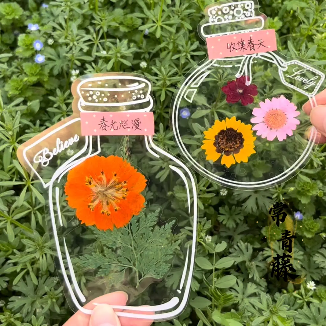 (大号)瓶子里的春天干花书签收集春天手工DIY透明贴纸树叶书签