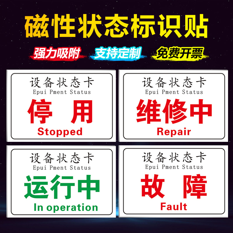 设备状态标识牌机械设备闲置维修中故障报废停用停机仪器标贴磁铁标志