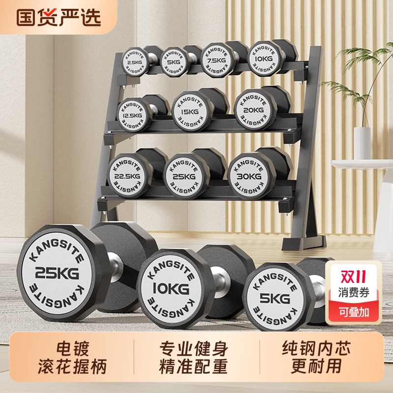 六角哑铃男士家用健身器材练核心力量练臂肌套装组合运动举重训练