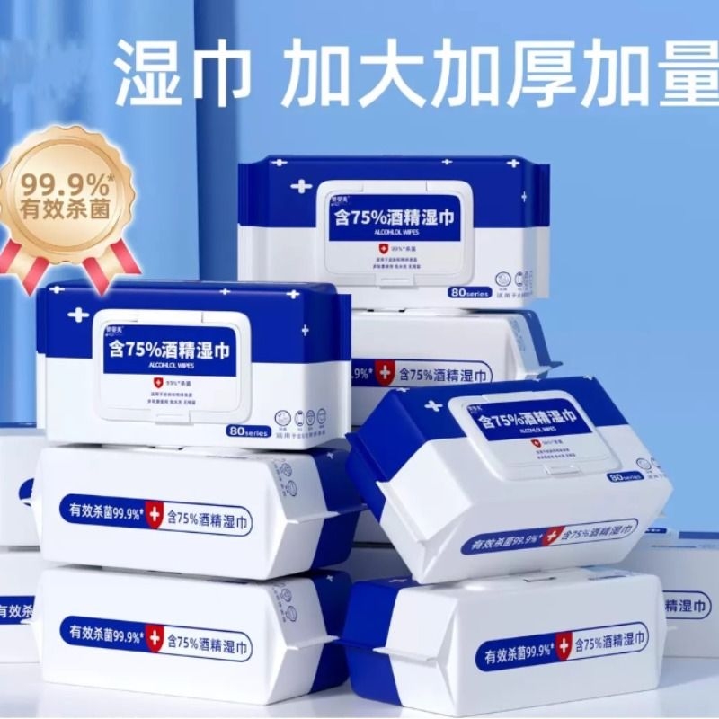 80抽含75度酒精消毒湿巾家用卫生杀菌抑菌便携专用湿纸巾大包清洁
