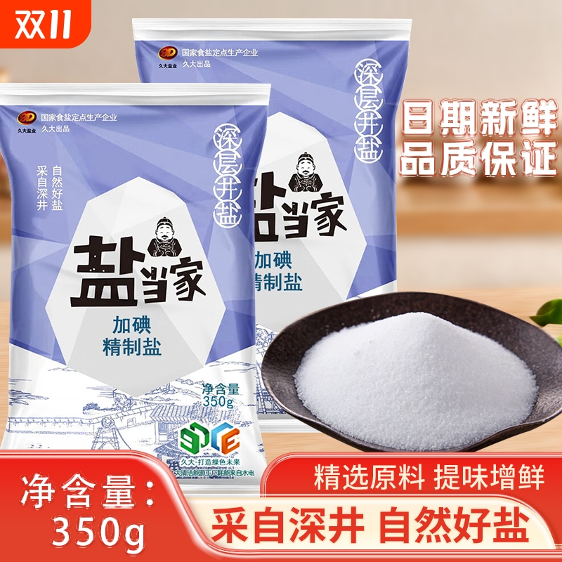 盐当家加碘盐精制家用宿舍350g含碘食用盐精制盐巴纯精岩盐调味品